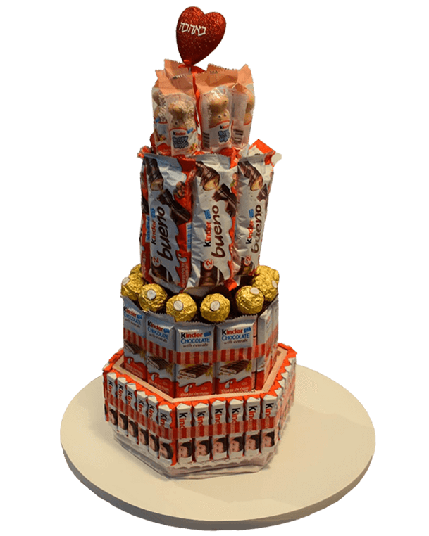 מגדל ענקי, גבוה ומתוק של מוצרי קינדר האיכותיים, כולל כדורי פררו רושה